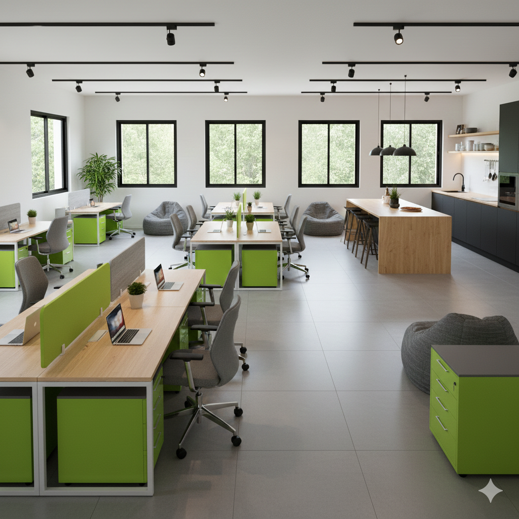 Soluciones arquitectónicas para espacios colaborativos con mobiliario de alta durabilidad.